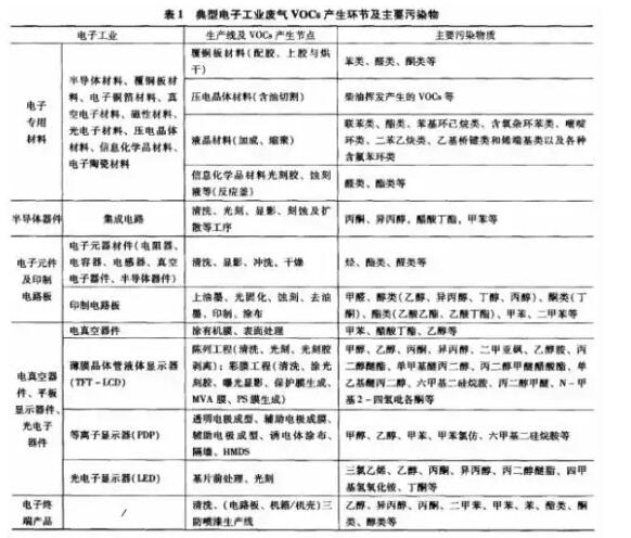 | 申瑞煙霧凈化器設備提醒您:電子工業從成品產業鏈來劃分,從上而下分為整機產品、基礎產品和電子專用材料等三個層次。它涵蓋了電子專用材料、半導體器件、電子元件及印制電路板、光電器件和電子終端產品等六個方面。 一、電子工業中VOC排放特征 1、電子工業廢氣VOCs產生環節及污染物類型 VOCs排放涉及涂裝行業、農藥醫藥、石油化工行業、涂料油墨染料生產、家具制造業、印刷業、干洗業、電子工業、合成革與人造革等行業。典型電子工業廢氣VOCs產生環節及主要污染物情況見表1。